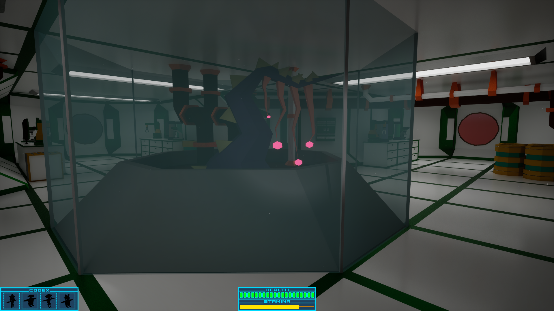As a member of C.E.S.A.R. your objective is to navigate space stations that have been commandeered by rogue robots, searching various containers to locate and rescue four different species of alien creatures from capture and enslavement. Safely escort the creatures to the portal found at the centre of the level for evac. Avoid being detected by the patrolling robots.